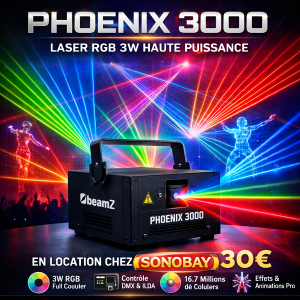 Le Phoenix 3000 est un laser professionnel compact et ultra puissant, capable de créer des shows dignes des grandes scènes.